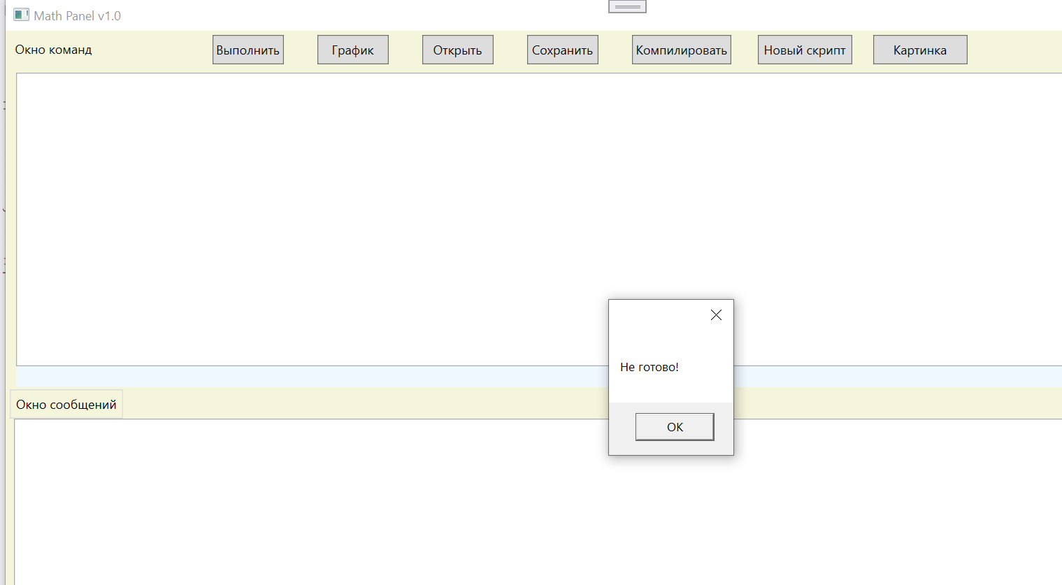 После запуска видим, что появились два текстовых блока. Создадим обработчик для кнопки «Выполнить».